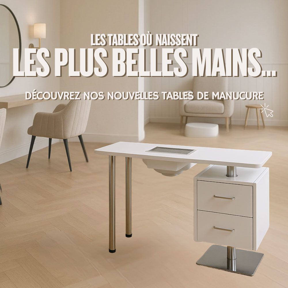 Nous sommes ravis de vous présenter nos toutes nouvelles arrivées : des équipements et mobiliers de pointe pour vos salons de coiffure, espaces de massage, spas et barber shops. Nous avons minutieusement sélectionné une gamme diversifiée pour répondre à toutes vos attentes en matière d'esthétique, de confort et de performance.