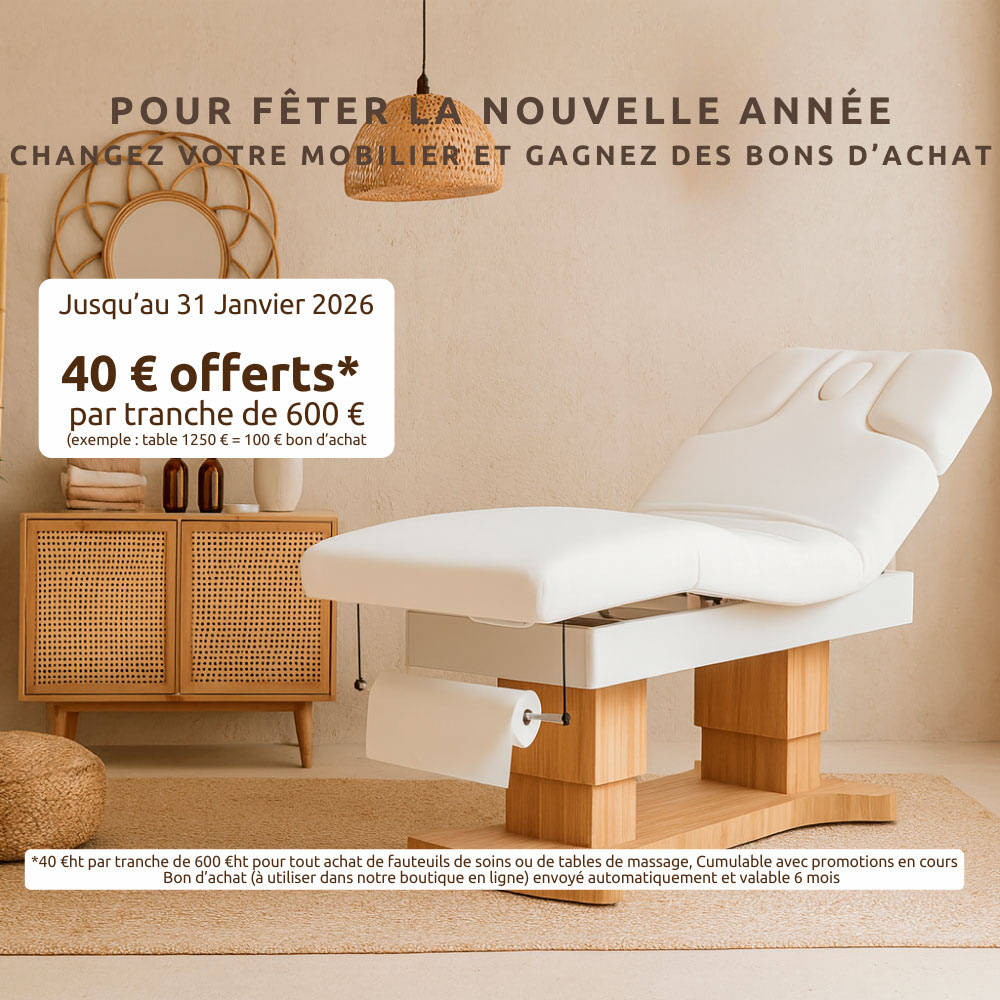 MFB Provence, votre partenaire incontournable pour l'univers du massage et de la relaxation. Nous vous offrons une sélection complète de mobiliers professionnels pour créer un environnement relaxant et harmonieux. Du fauteuil de massage au chariot d'accueil en passant par les tables de massage et les accessoires, chaque élément est pensé pour optimiser votre espace et votre confort.