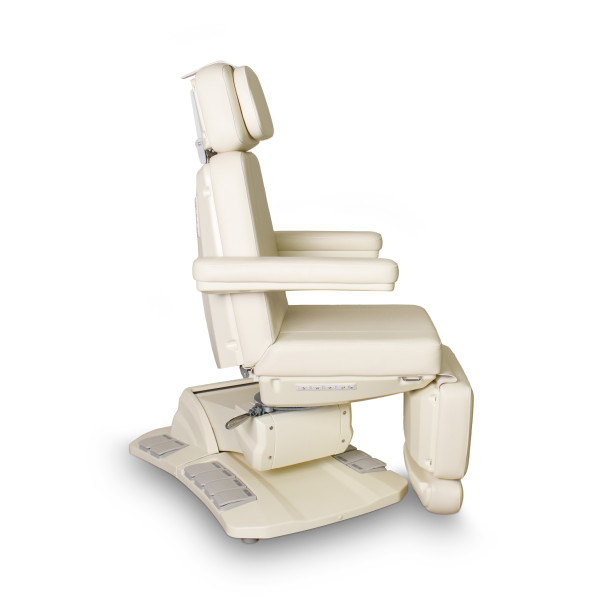 Équipé de quatre moteurs, il permet un réglage précis de la hauteur, de l’inclinaison du dossier, du repose-pieds et du siège, garantissant ainsi une adaptation parfaite aux différents soins esthétiques et médicaux. Son mécanisme de rotation à 120° dans les deux sens facilite l'accès et optimise l’ergonomie pour les professionnels.
