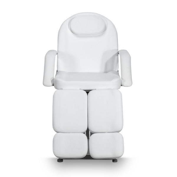 Grâce à sa structure métallique solide et son revêtement blanc raffiné, ce fauteuil offre une stabilité exceptionnelle et un confort absolu pour les soins du visage, du corps ou des pieds. Son assise moelleuse et son design ergonomique garantissent une expérience de soin agréable pour le client comme pour le praticien.