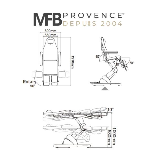 Ces réglages offrent un confort maximal au client tout en permettant au praticien d’adapter parfaitement la position de travail.