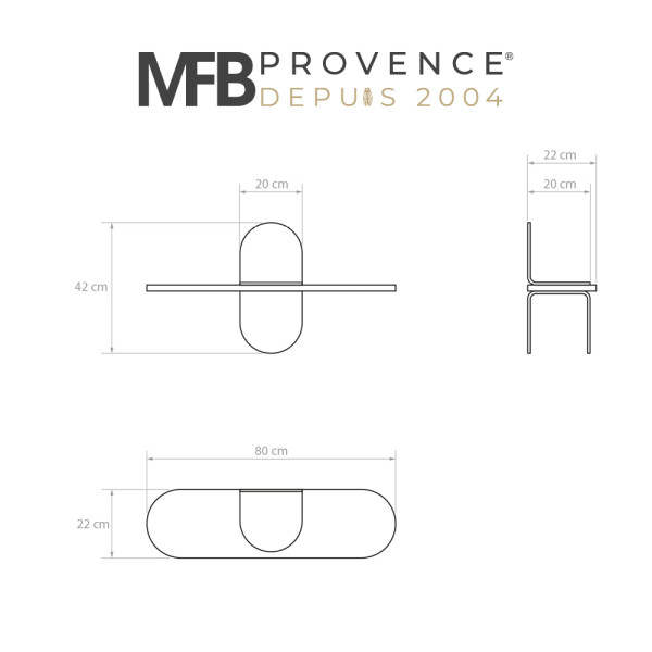 Les dimensions compactes de l’étagère (80 × 22 × 1,8 cm) en font un meuble pratique, même dans les espaces réduits. La profondeur utile de 22 cm offre suffisamment d’espace pour disposer objets et accessoires, tout en restant harmonieuse visuellement. Facile à installer, le kit de fixation fourni permet une pose simple et sécurisée sur tout type de mur.