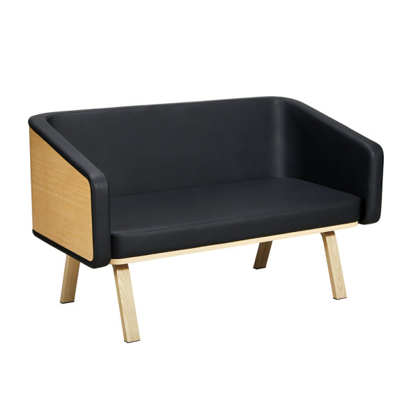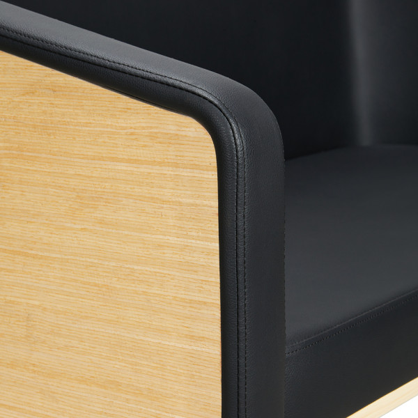 • Pieds en contreplaqué de frêne courbé, finition sombre assortie